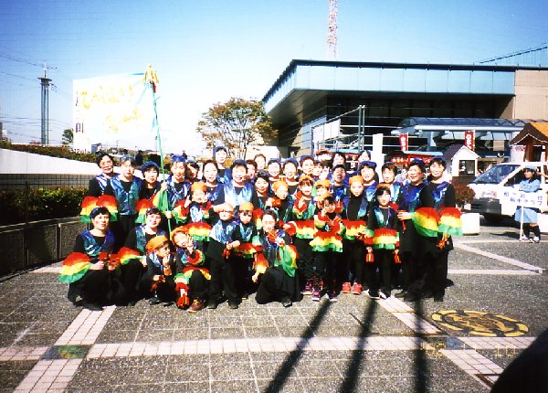 我らが踊ればみんなが踊る。 我らが笑えばみんなが笑う。 ステップ振り付け考えて、衣装、デザインは手作りで、熟年パワー全開です。 手作りのチームひばり鳴子隊。楽しく踊ります。 地元の皆様、声出し、手拍子、足拍子、応援よろしくお願い致します。