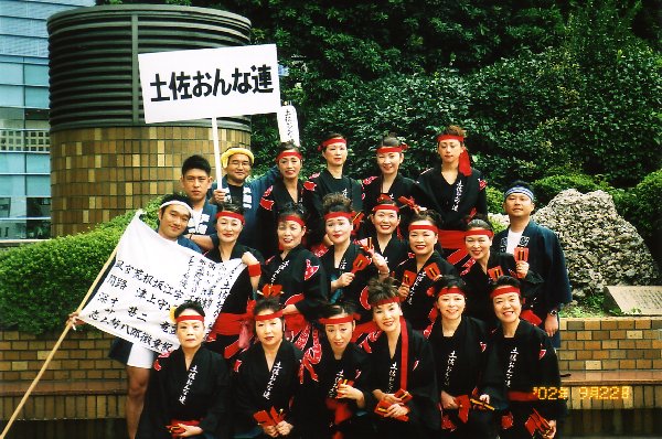 よさこい祭り大好きの高知出身者を中心に集まりました。 都はるみさんの正調”よさこい鳴子踊り”を踊ります。
